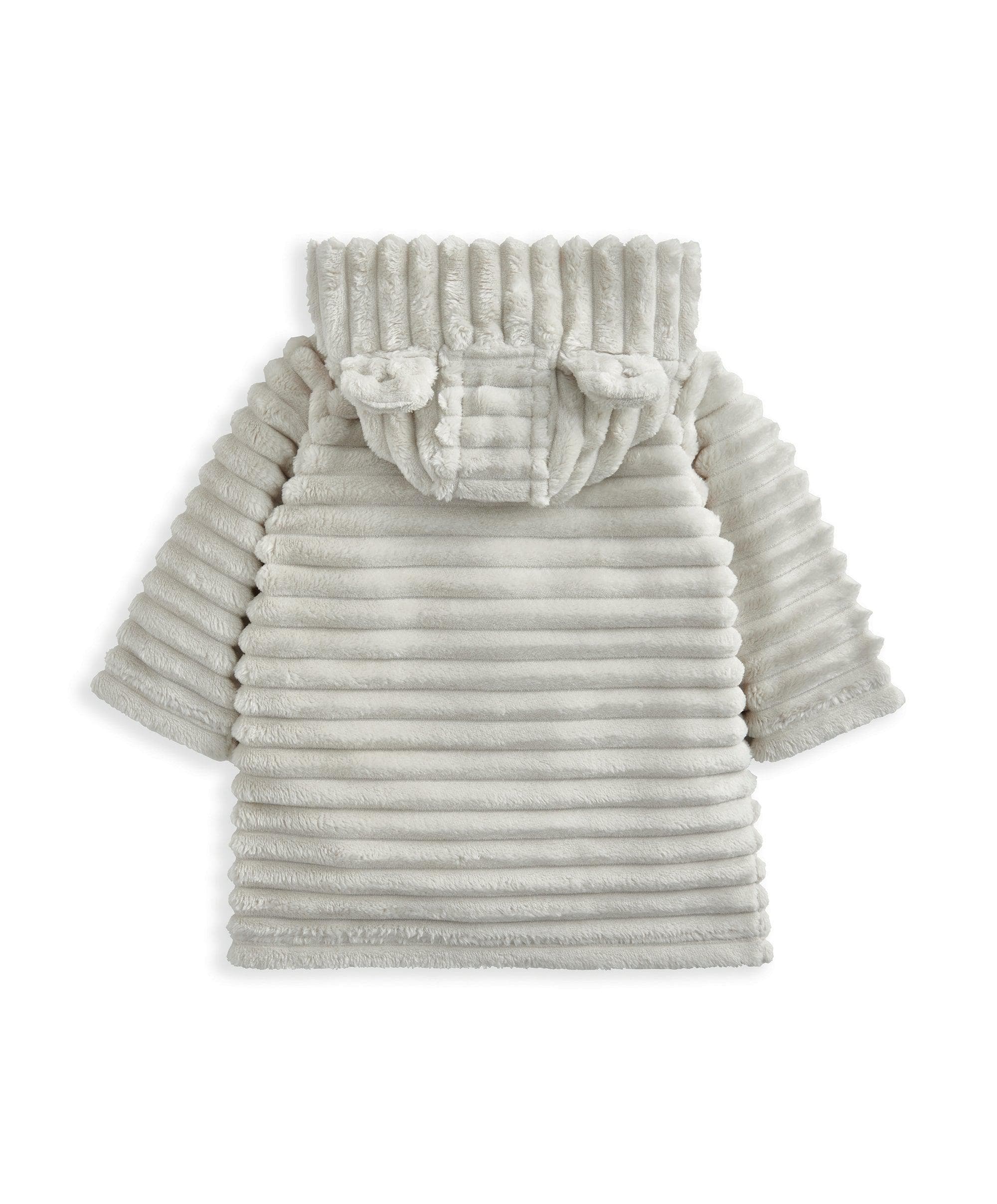 This super-soft ribbed faux fur dressing gown features 3D bear ears and an embroidered bear face on the hood, curved patch pockets, and a functional belt with loops for a secure fit.